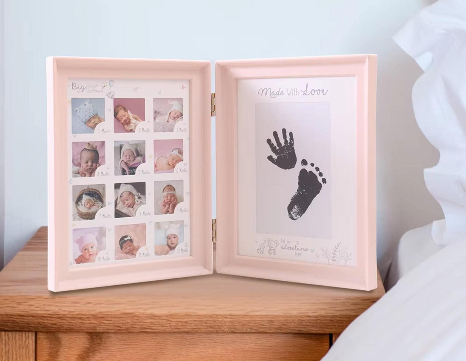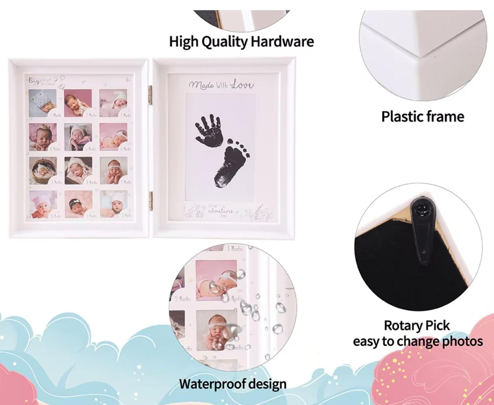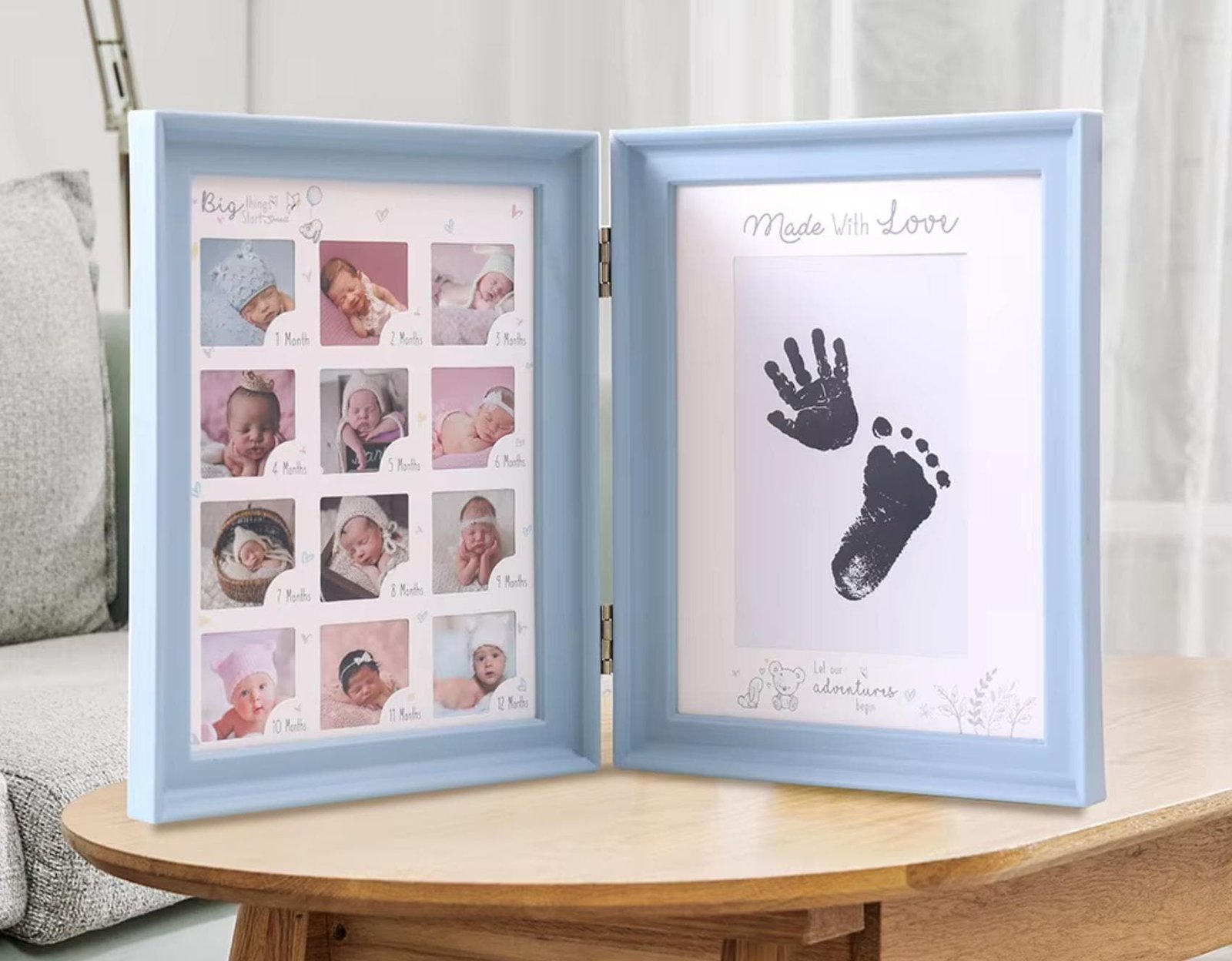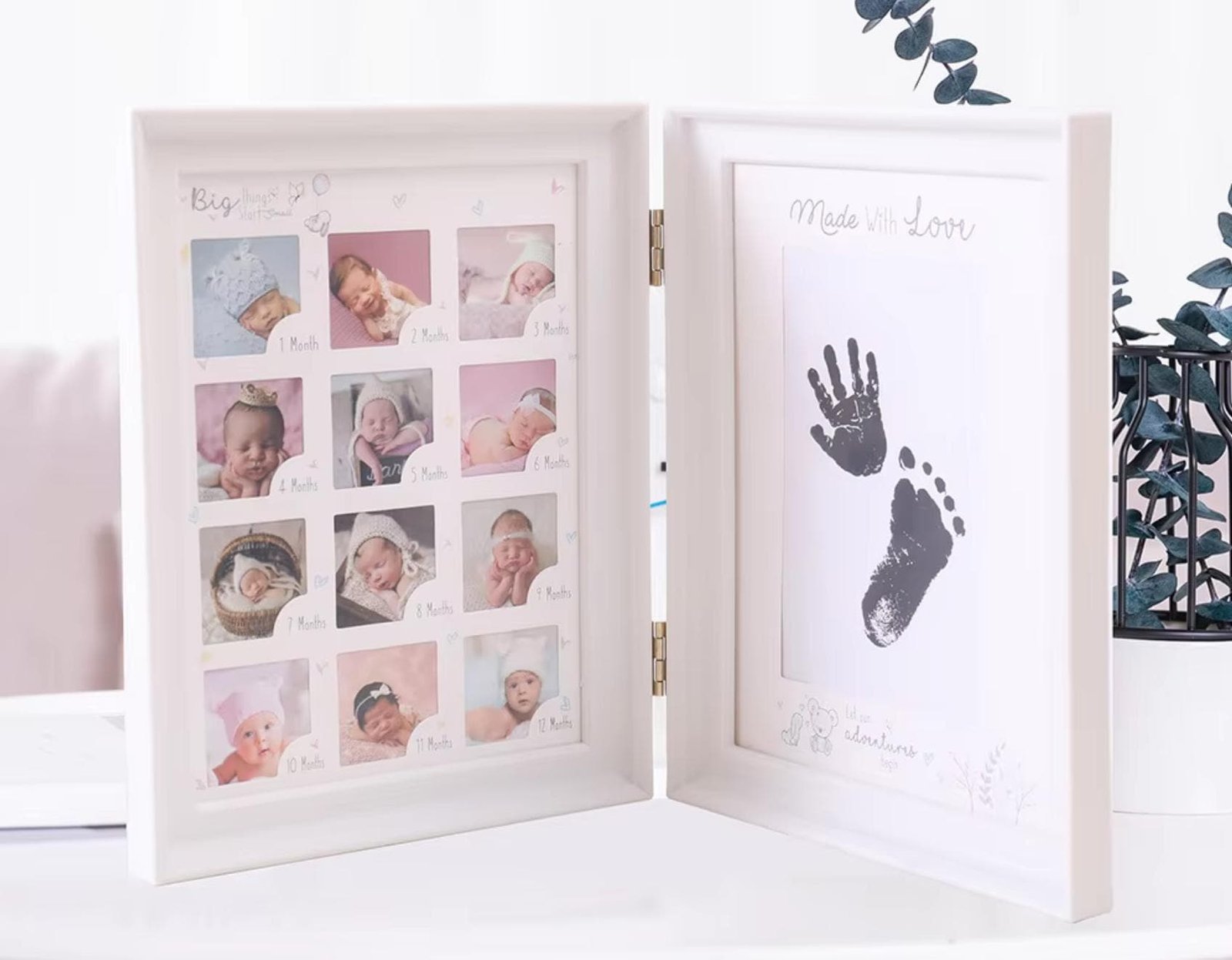 • 0–12 Month Milestone Display – Dedicated photo slots to capture each month of your baby’s first year.